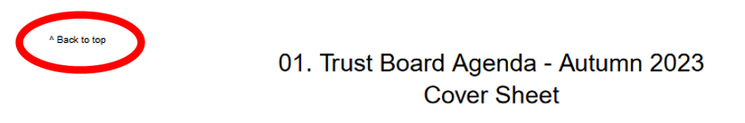 a) Cover Sheet (in the case of a Policy this includes the Approvals list). There is a 'Back to Top' link that takes you back to the first page where the agenda items are listed.